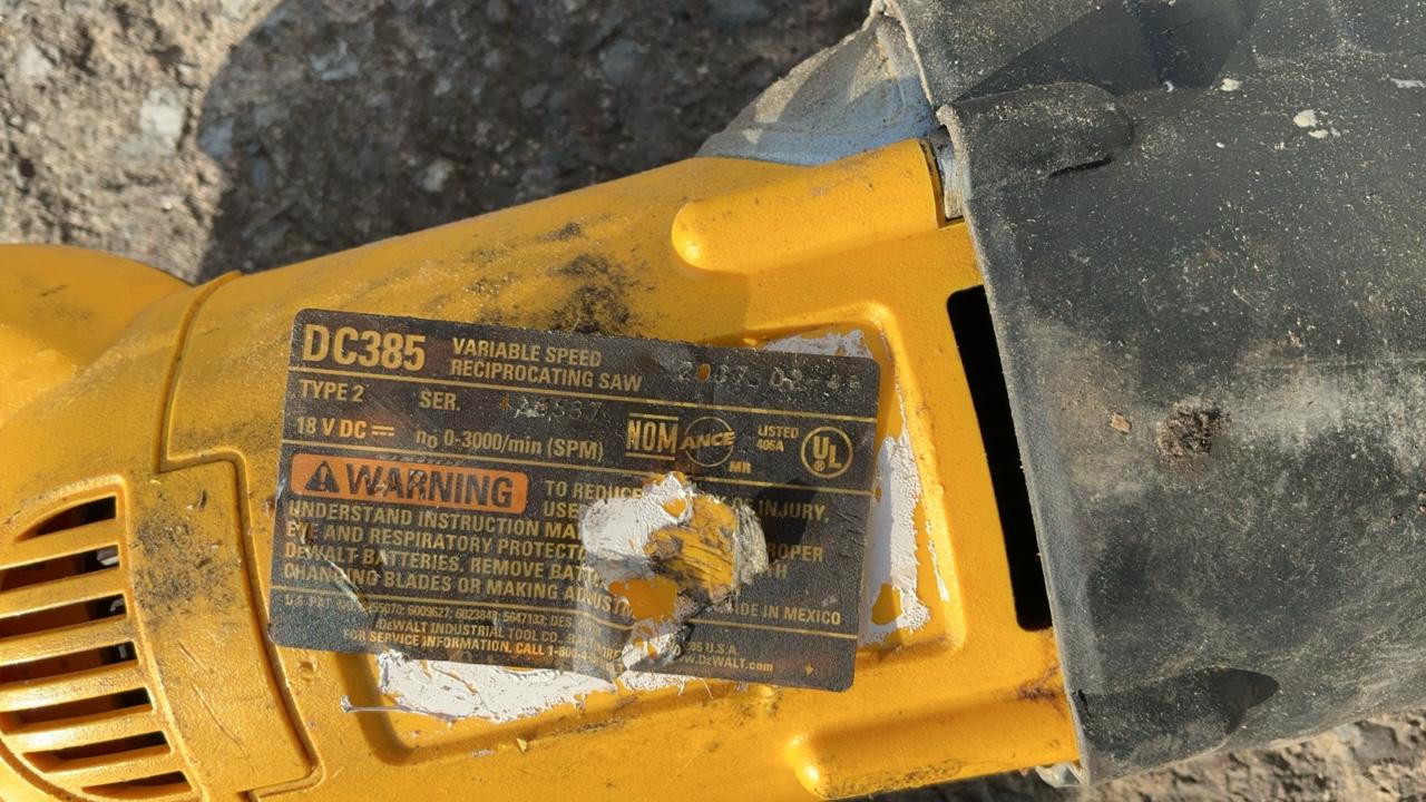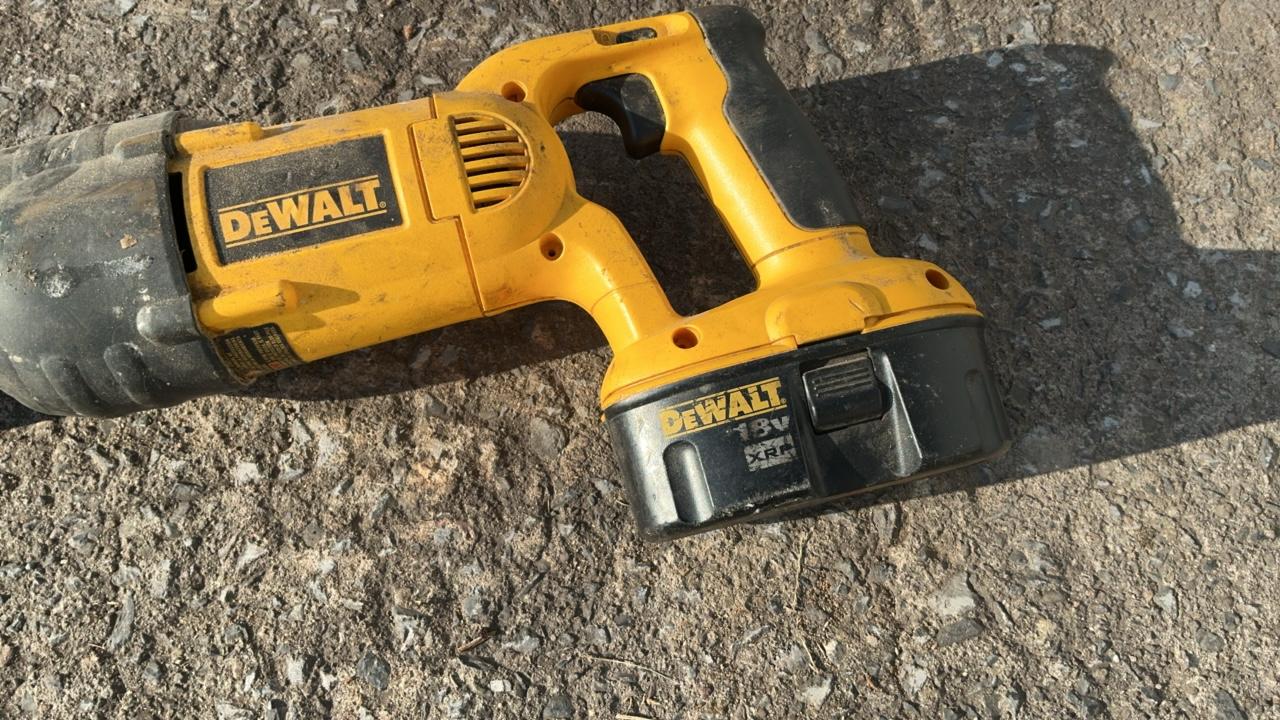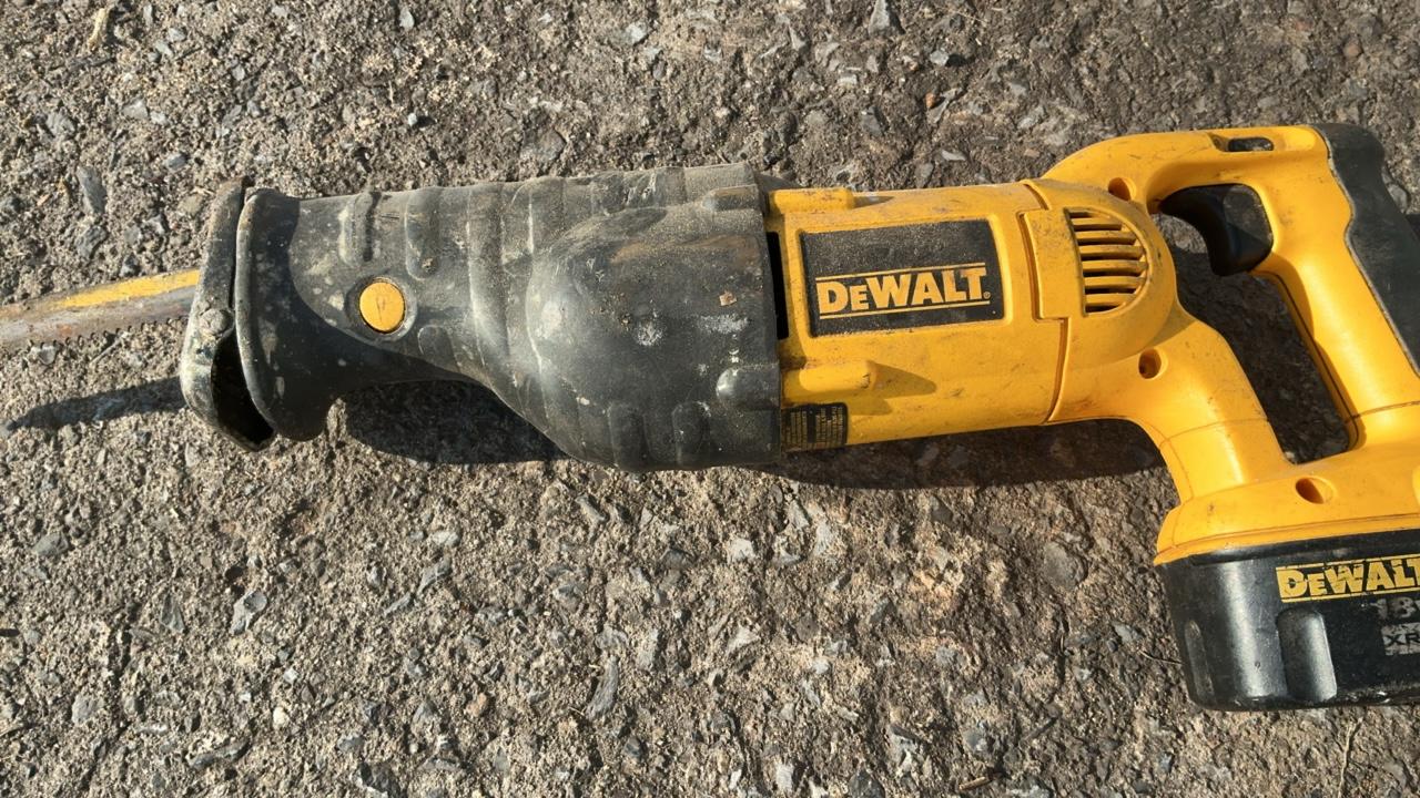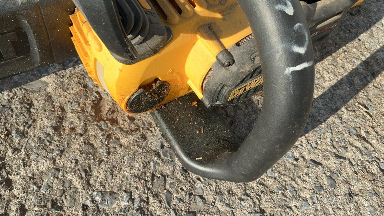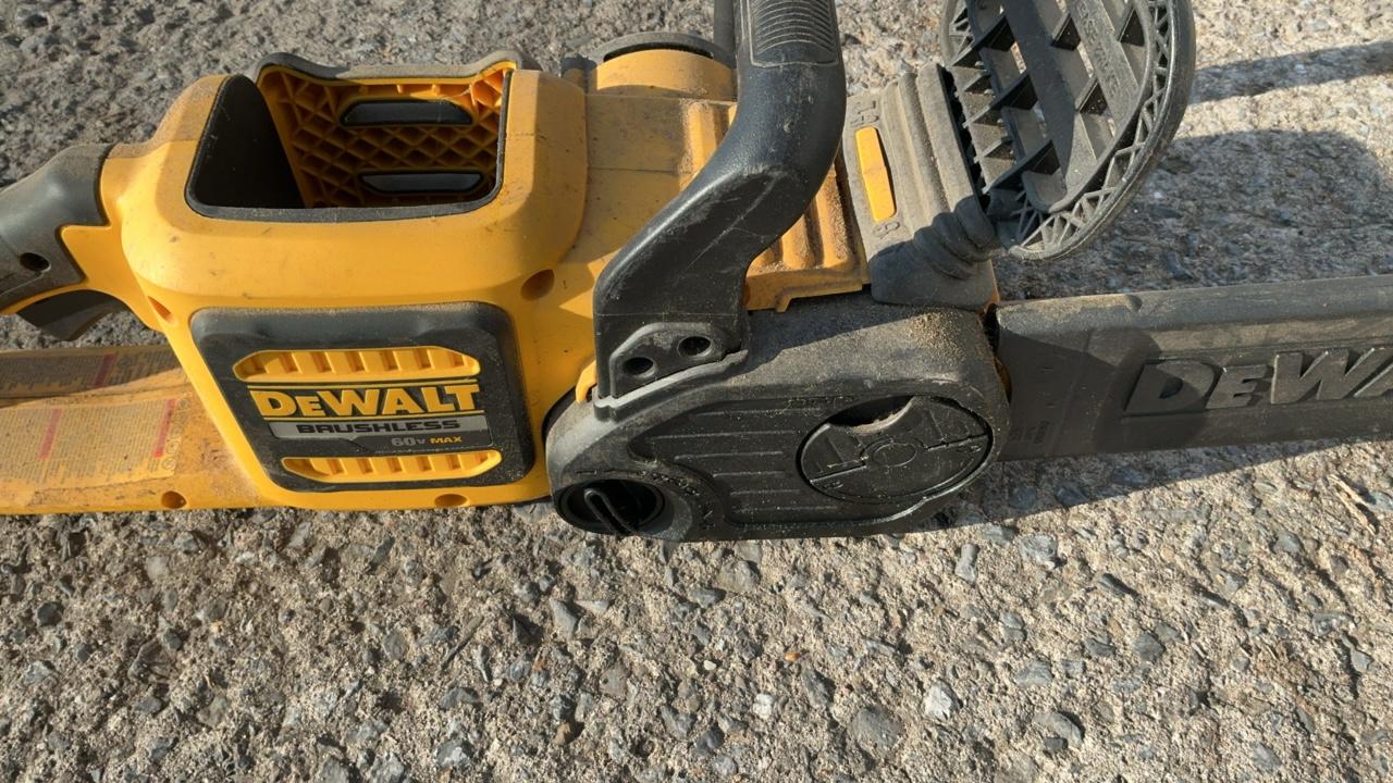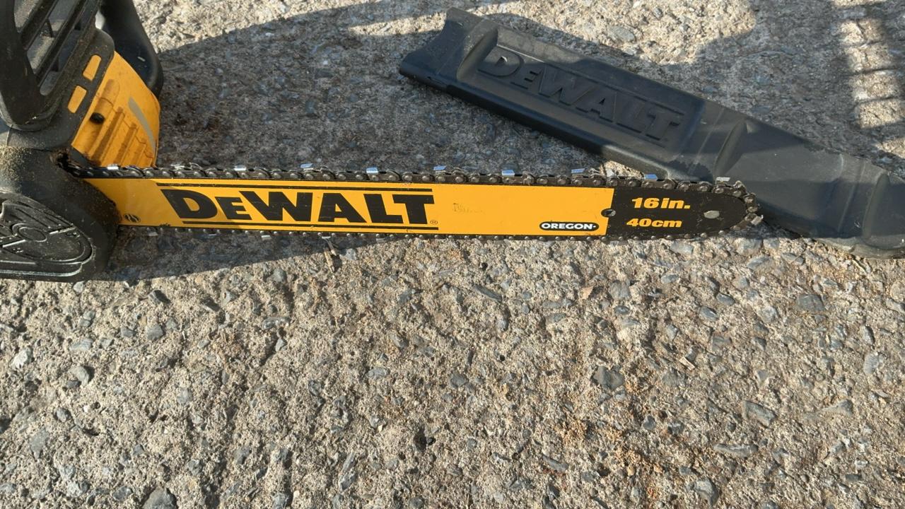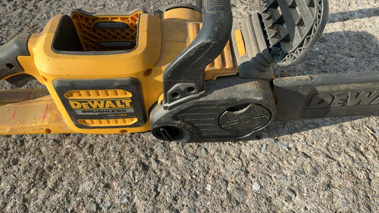 -- Description -- DeWalt DCCS760 Chainsaw Serial Number: 070586 Bar Length: 16″ Batteries: Not Included DeWalt DC385 Variable Speed Reciprocating Saw Includes Battery: DC9096 18V Blade Length: 6 1/2″