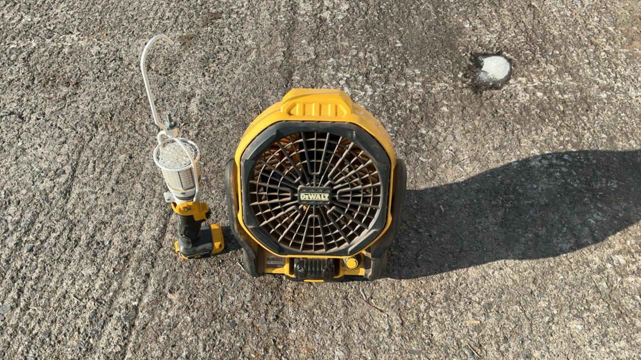 -- Description -- DeWalt DCE511 Jobsite Fan Includes DCB200 20V battery DeWalt LED Light Made for 20V battery system