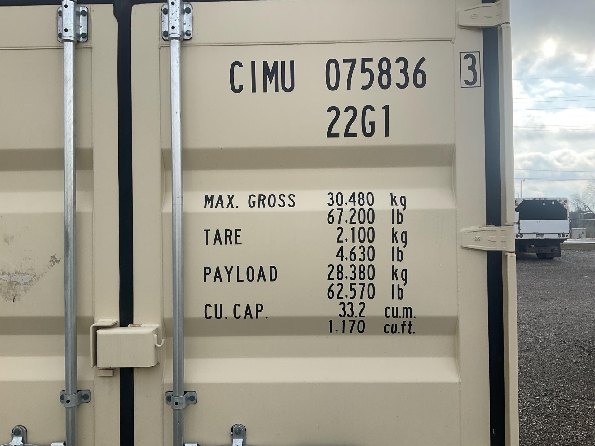 -- Description -- Standard 20’ container with end doors. 96” wide x 102” tall. Tan in color. -- Contact -- Specialist: Myron Miller, 574-536-6306.