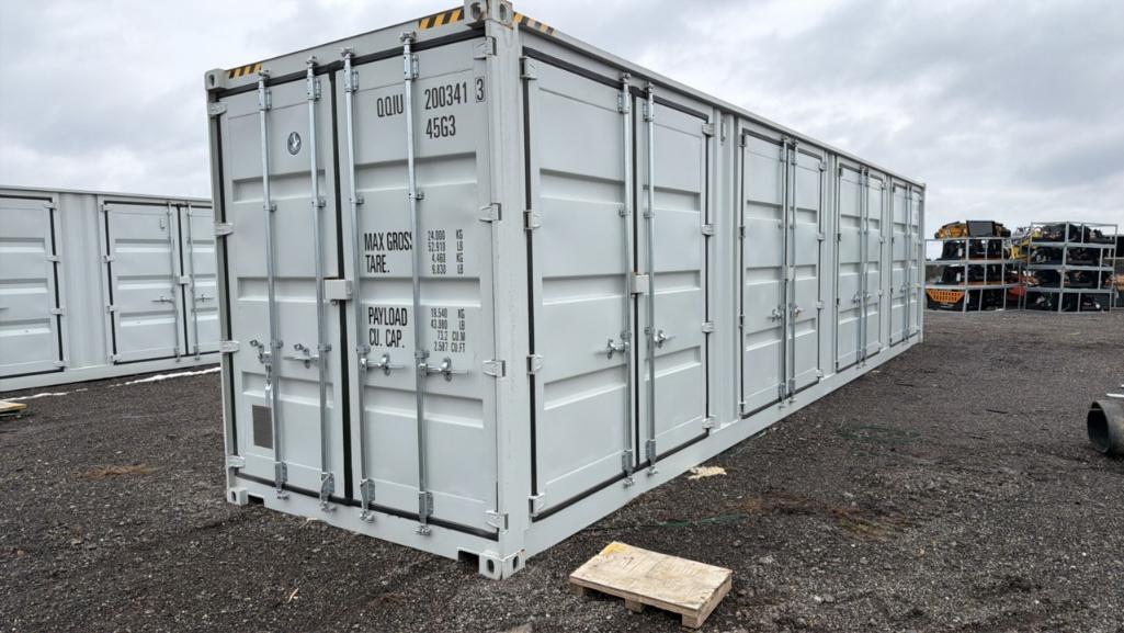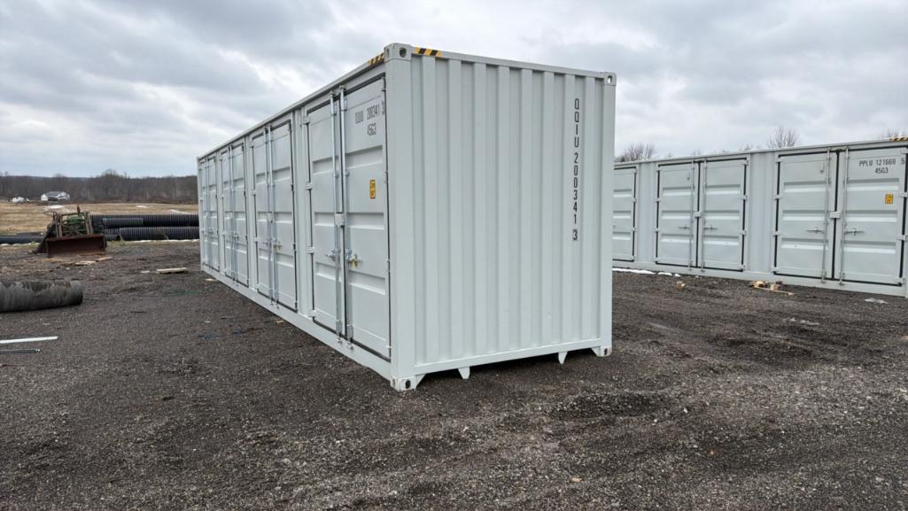 -- Description -- One Trip 40', high cube, multi-door, shipping container, 4 side doors, end doors, 9'6'' high, 8' wide. -- Contact -- Specialist: Myron Miller 574-536-6306. Please review the Important Information Lot at the beginning of the auction for full details before bidding.