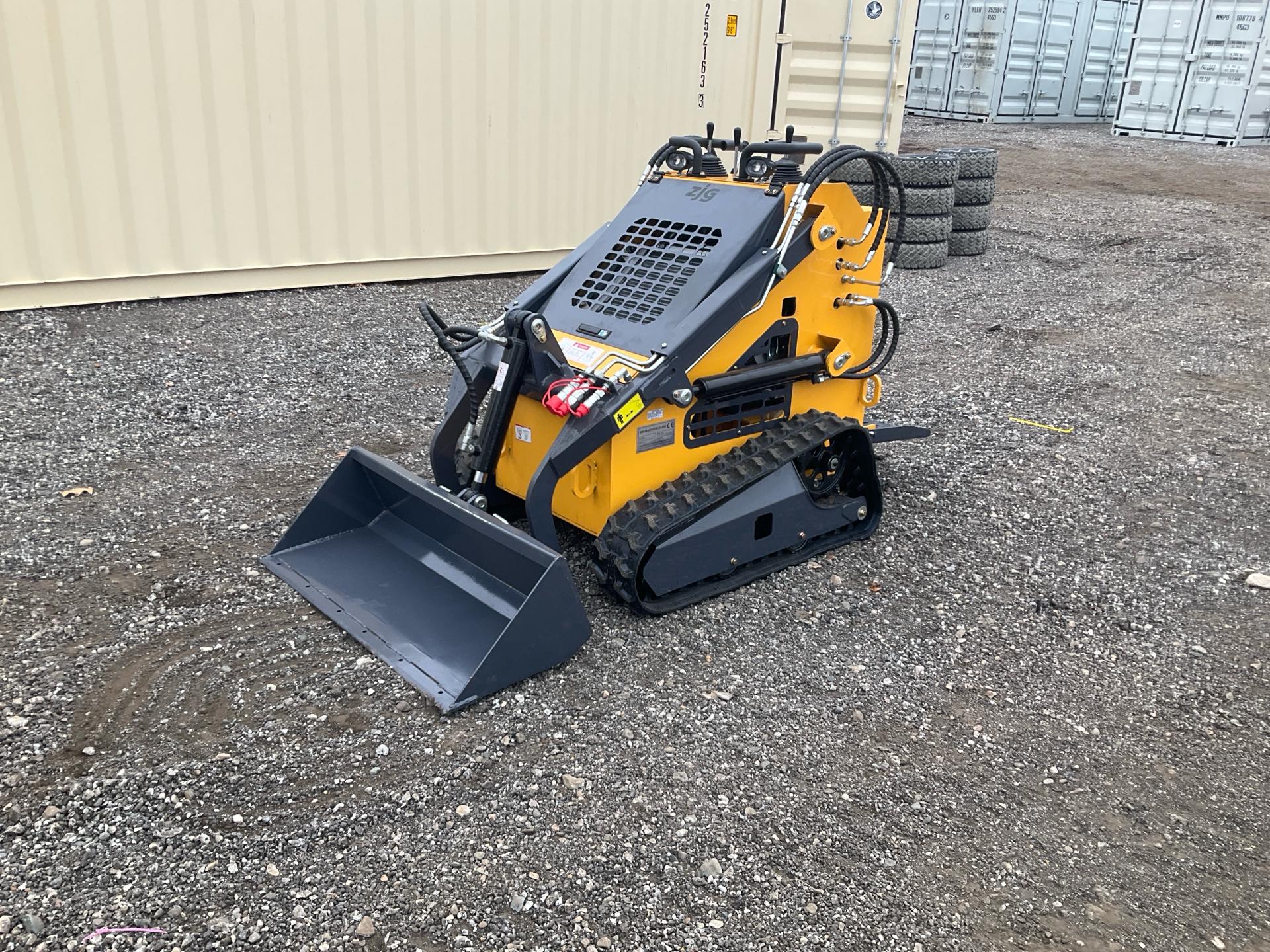 -- Description -- Model: ZJZ-380 13.5 HP gasoline engine 420 cc Electric start Stand‑on operator platform Rated lifting force: 441 lb Hinge‑pin height: 70.9 in Dump height: 58.3 in Forward reach at dump: 16.9 in Travel speed: up to 3.7 mph Gradeability: 25% Auxiliary hydraulics with quick‑connect Bucket capacity: 5.3 cu ft Ground clearance: 4.3 in Universal mini‑skid attachment plate -- Contact -- Specialist: Myron Miller, 574-536-6306.