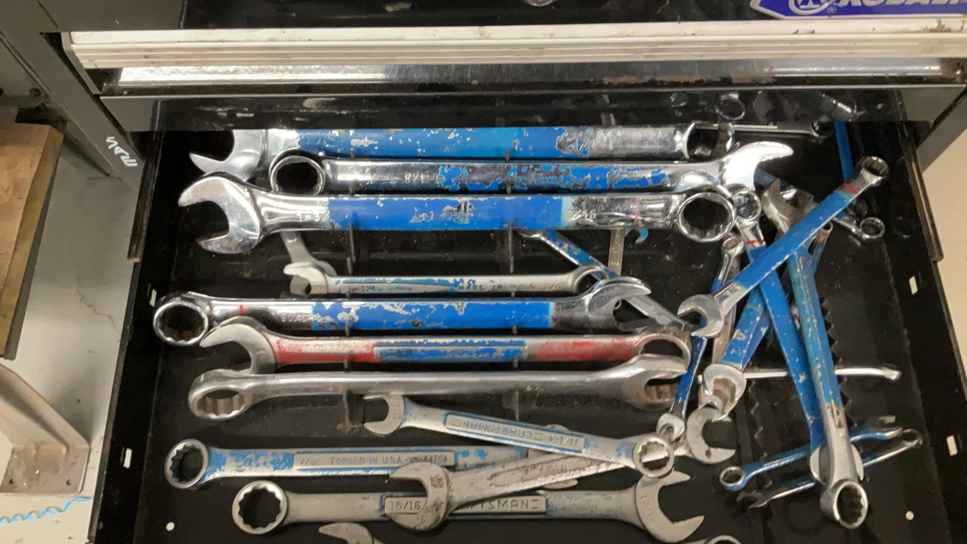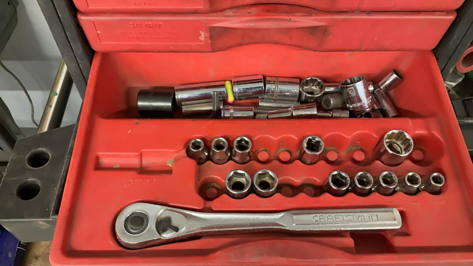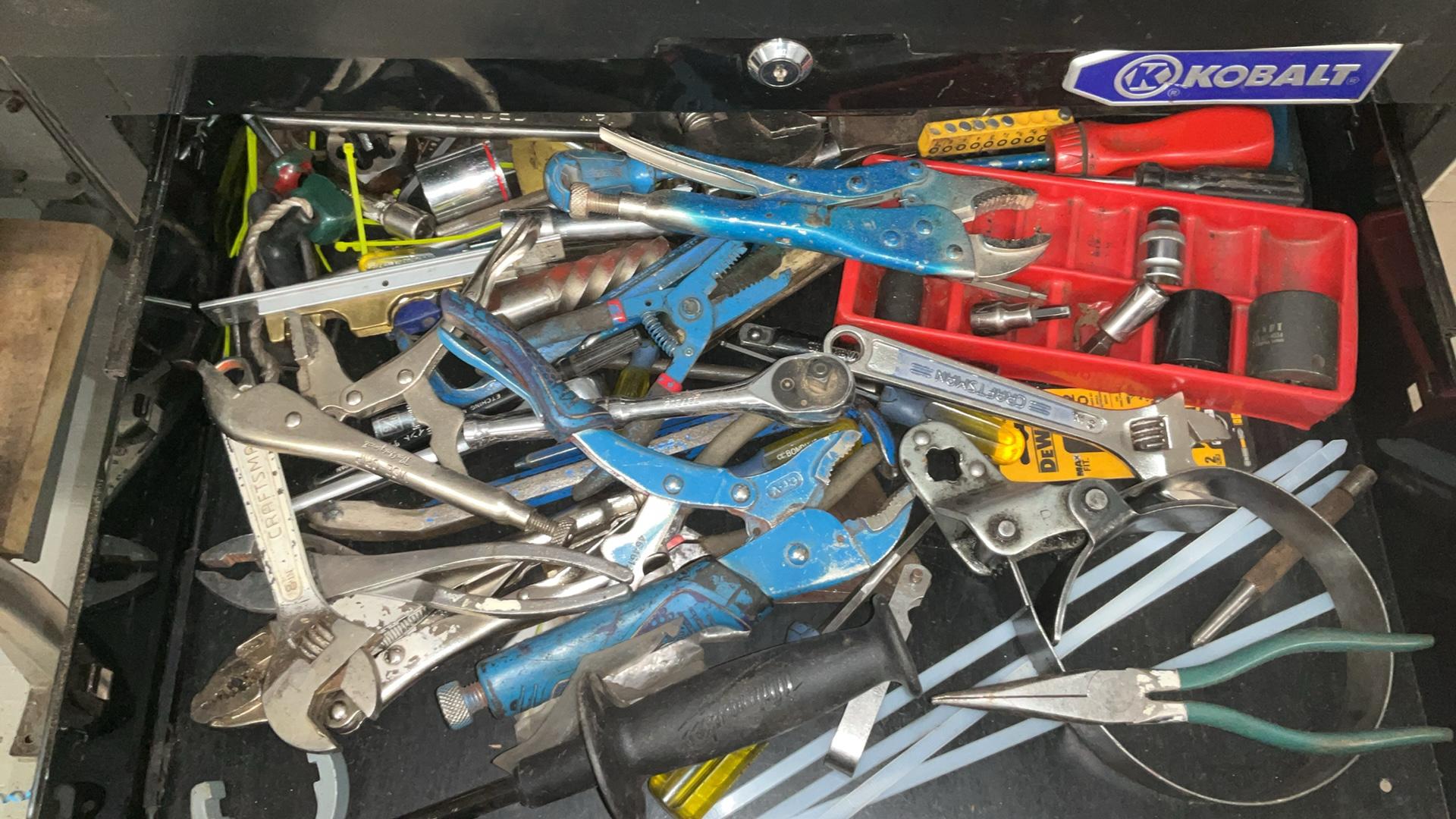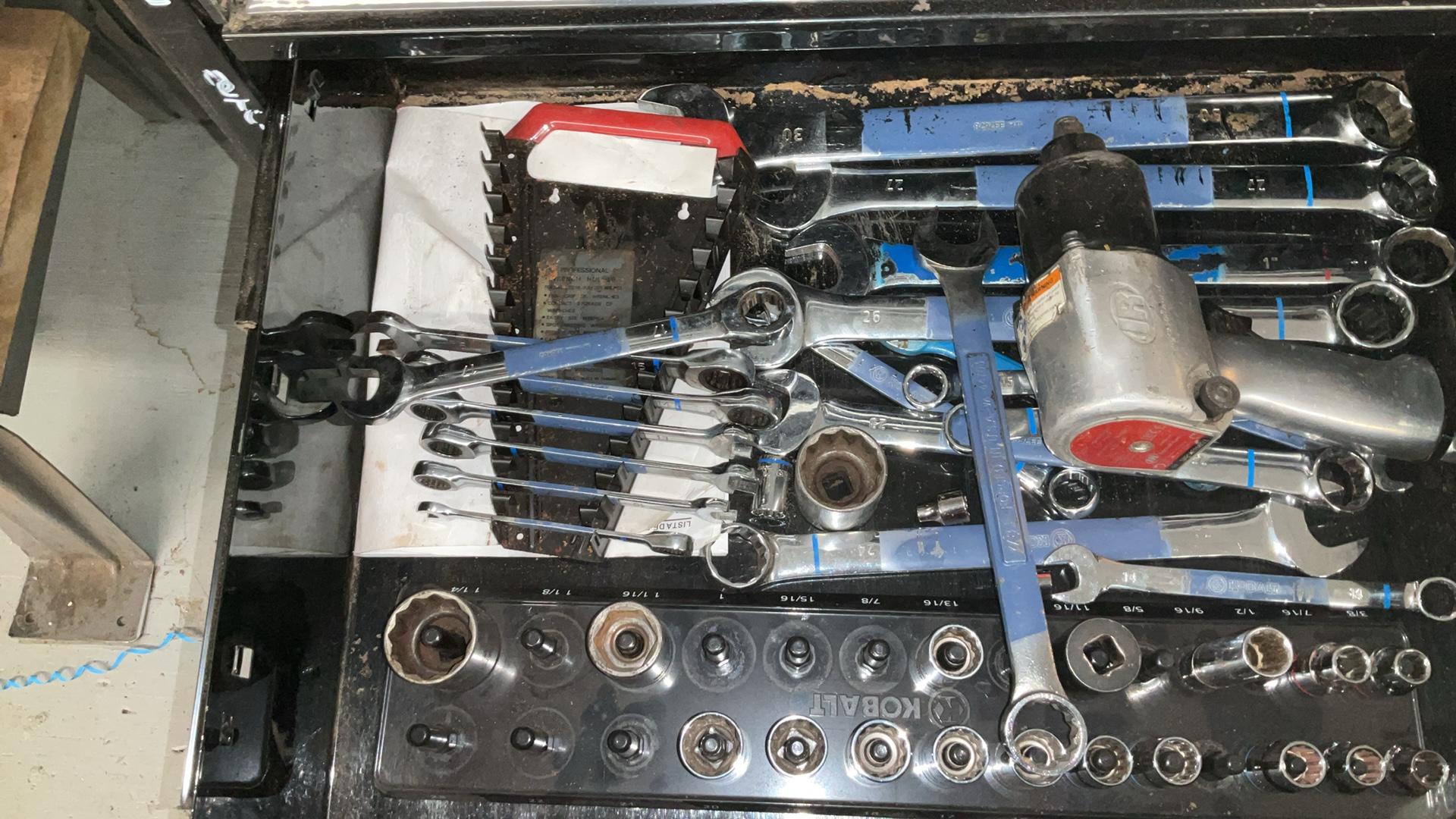 -- Description -- 26“ x 36“ x 18“ rolling tool chest, Three drawer craftsman toolbox with socket sets, includes wire, grips, and pliers, open end wrenches, Ingersoll Rand impact, cobalt tool set may have some missing pieces, miscellaneous cobalt tools,