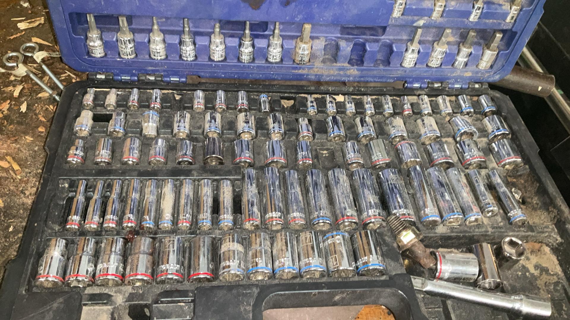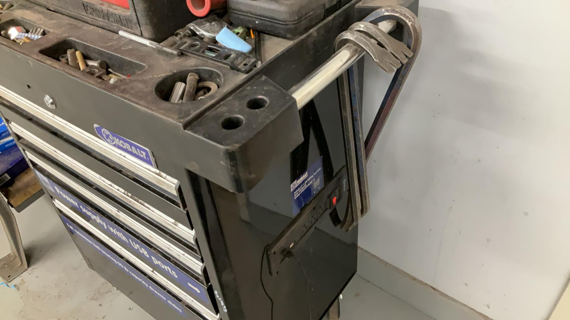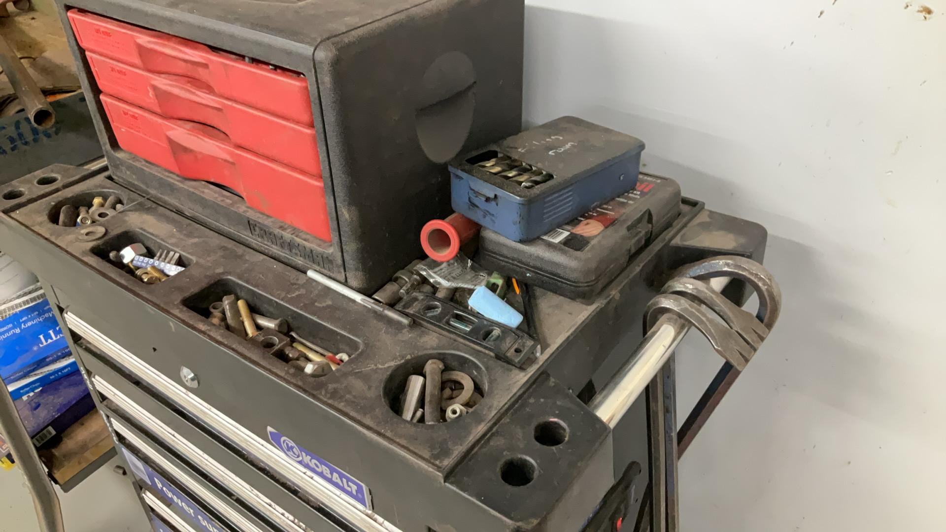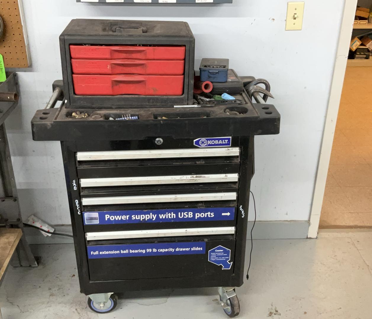 -- Description -- 26“ x 36“ x 18“ rolling tool chest, Three drawer craftsman toolbox with socket sets, includes wire, grips, and pliers, open end wrenches, Ingersoll Rand impact, cobalt tool set may have some missing pieces, miscellaneous cobalt tools,