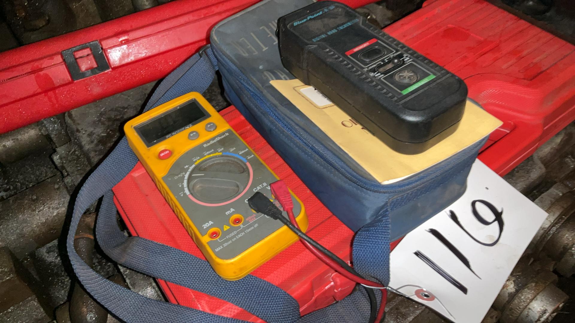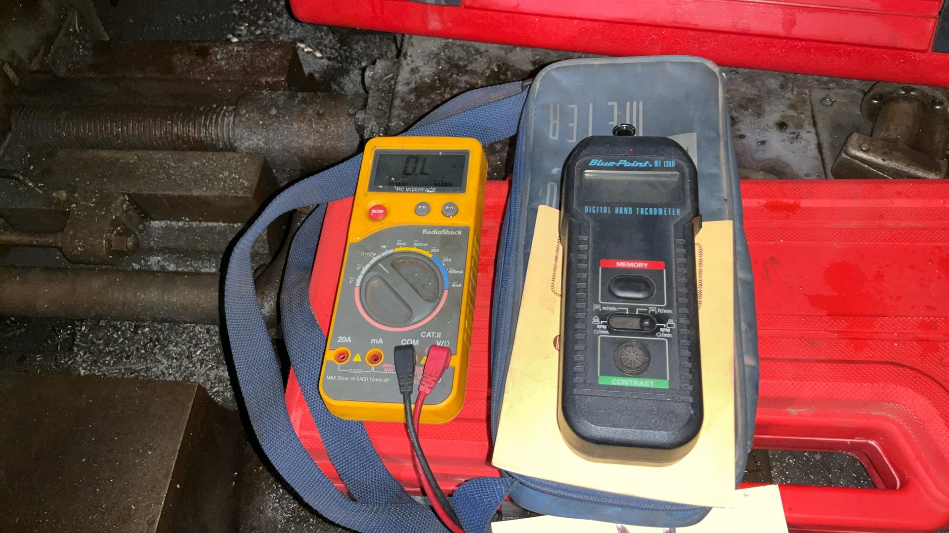 -- Description -- Photo Tach and contact tachometer, RadioShack electric meter,