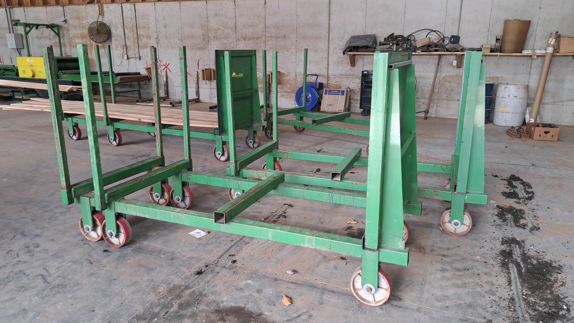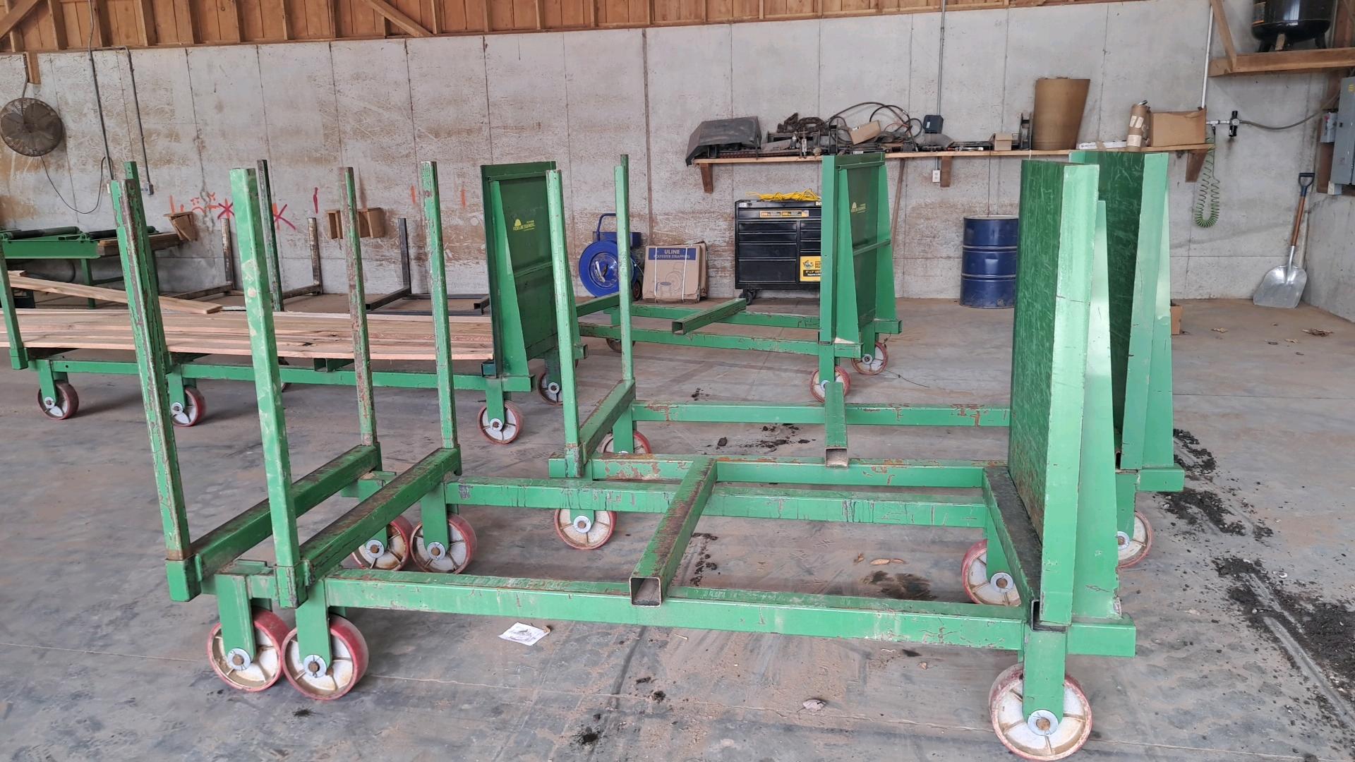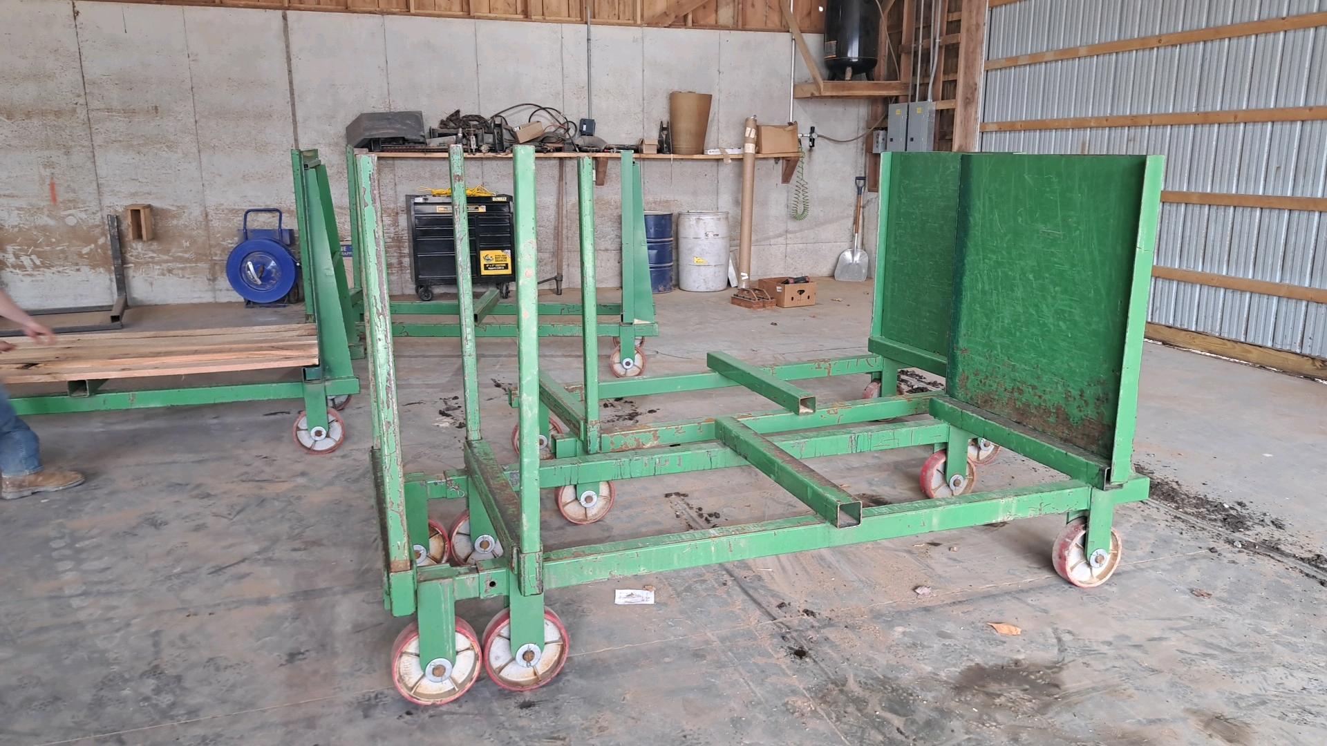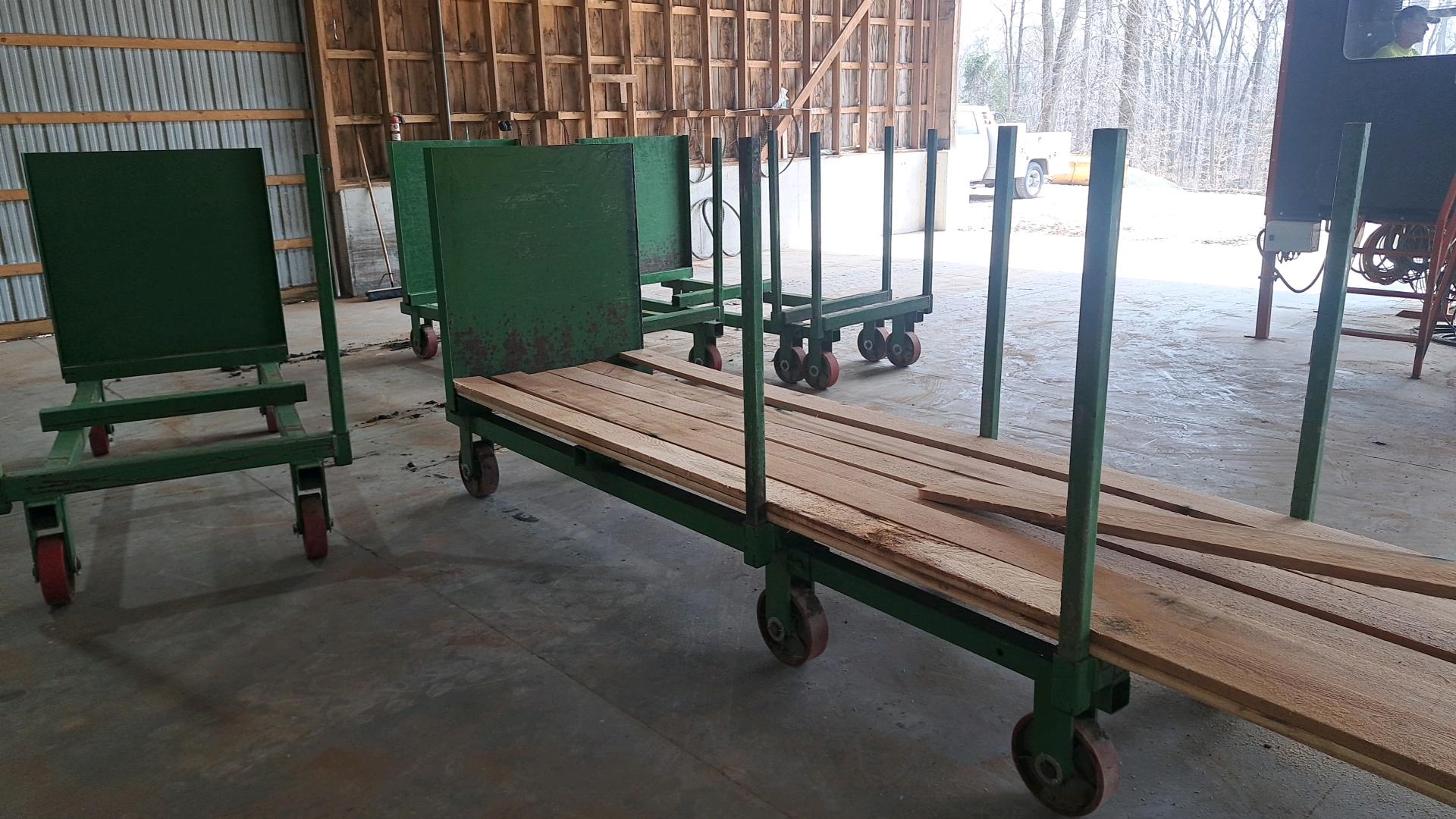 -- Description -- 4 carts 43"×8'×5'T, 2 have 4' length extensions,very light use, good condition -- Location -- 650 Stricklers Town Rd, Newmanstown, PA 17073.. -- Contact -- Specialist: Eugene Hochstetler, 574-242-1100.